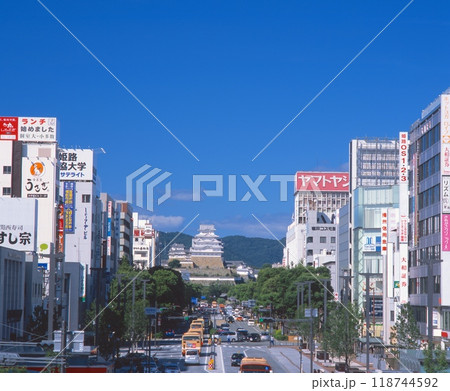 「世界文化遺産」「国宝」姫路城と大手前通り(JR姫路駅、ピオレ姫路展望フロアより/姫路城十景