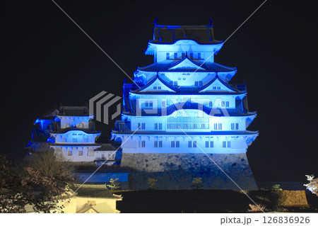 姫路城と夜桜(大手門付近より)/姫路城十景/世界文化遺産/国宝/日本のさくら名所百選