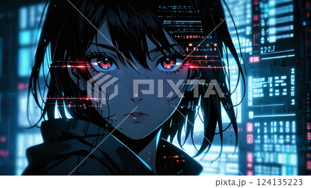 サイバーパンク風 ネオンカラーが美しい少女 アニメ風「AI生成画像」