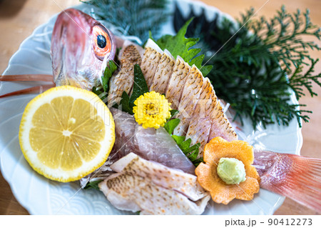 食材 刺身 魚 鯵 鯵活き造り 舟盛り 魚介類 日本料理 新鮮