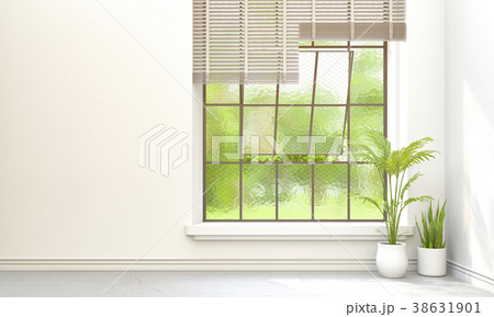 plants and green landscape in window. 3D render