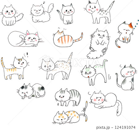 犬のキャラクターイラストのセット。白くてかわいい子犬のイラスト。笑っている犬、怒っている犬など