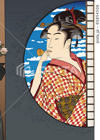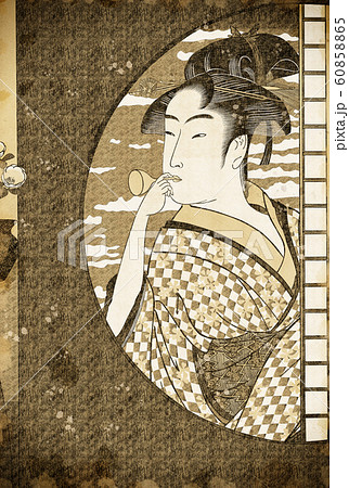 ビードロを吹く娘&真崎邊より水神の森内川関屋の里を見る圖 vintage