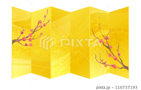 日本の伝統的間仕切り家具、金屏風のイラスト