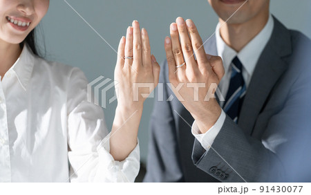 婚約指輪を見せる入籍する有名カップル(結婚会見・婚約会見・婚約発表・記者会見)