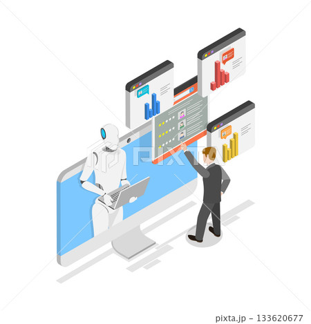 3D Isometric Flat Vector Illustration of AI In Human Resources , Robot HR Manager. Item 3