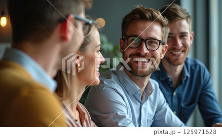 Meeting of colleagues discussing ideas in an office setting during a business collaboration