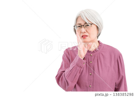 噂話,悪口,クレーム,嫌味を耳打ちするグレイヘア,シルバーヘアのシニア女性