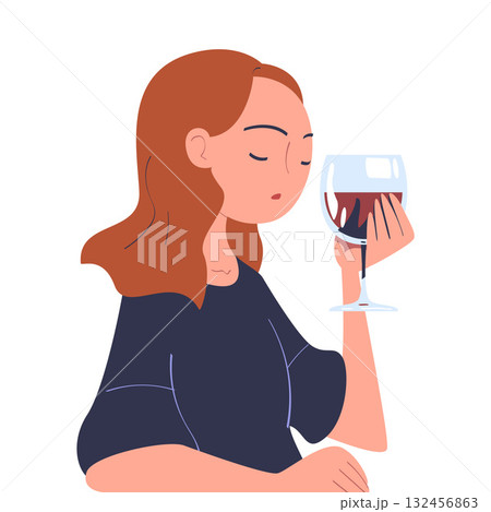 Woman with Alcohol Drink and Beverage in Glass Vector Illustration