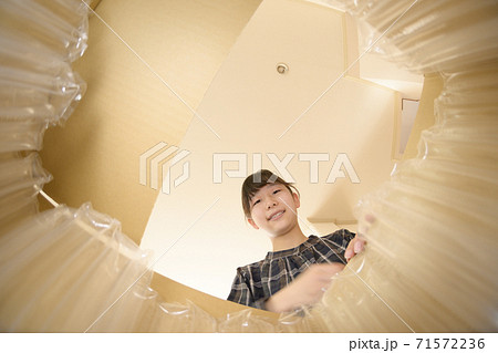 通販で買った商品を開封する女の子(内側からの視点)