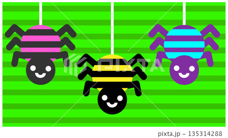 吊るされた毒グモのかわいいキャラクターイラストセット