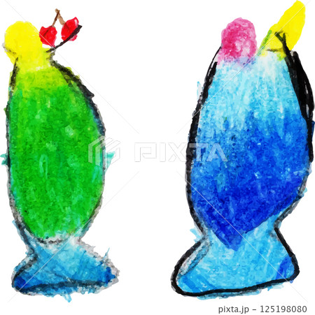 子供が描いたレトロなクリームソーダとメロンソーダ