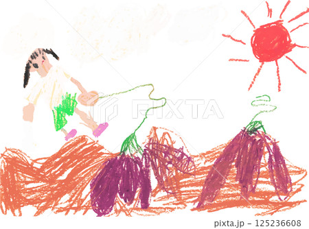 クレヨンで子供が描いたような、子供の絵
