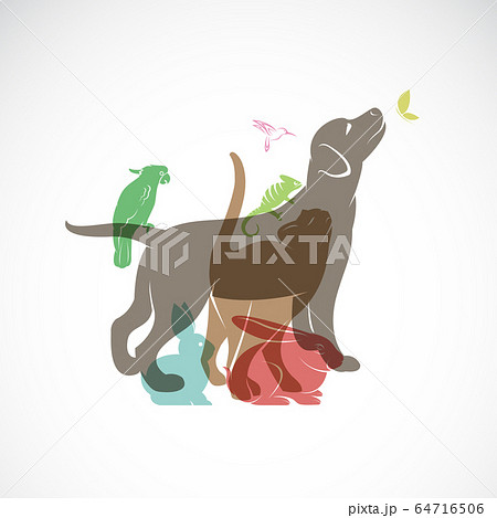 Vector group of pets - Dog, cat, parrot, Animal.