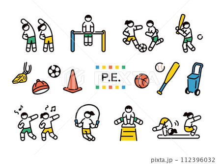 元気一杯の可愛い小学生仲良しキッズグループのイラスト セット バリエーション 白背景 ベクター 全身