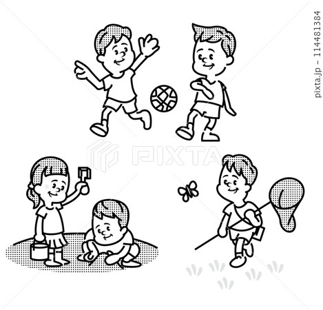 保育園での楽しい遊び 伸び伸びと過ごすこども達のセット