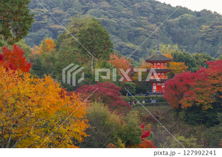 初秋の午後に京都清水寺を参拝し子安塔から眺める
