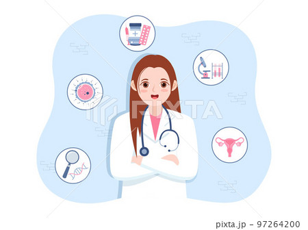 Fertility Clinic on Infertility Treatment for Couples and Handles in Vitro Fertilization Programs in Flat Cartoon Hand Drawn Templates Illustration