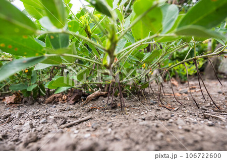 ピーナッツの花が咲き,地面に突き刺さる