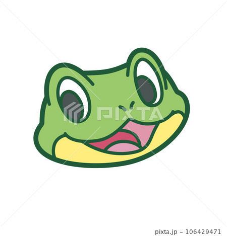 Cute cartoon frog face with big eyes and a smiling expression. Flat vector illustration of an amphibian animal character isolated on white background for kids prints, nursery decor, stickers and