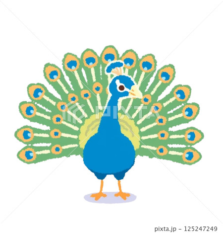 デフォルメ、孔雀のイラスト、アイコン、素材、背景なし