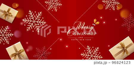 赤と金で彩るクリスマスギフトと華やかな飾り素材