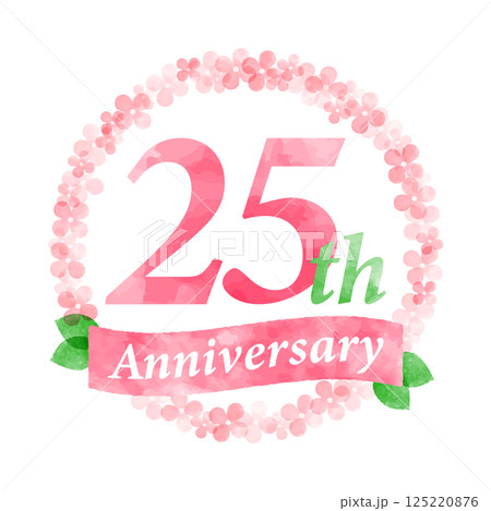 ピンクの花リースで飾った25周年記念デザイン