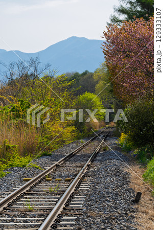 ローカル線の線路、春景色
