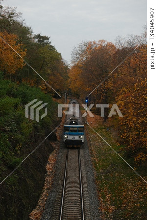 Autumn Train Journey Through Colorful Forest