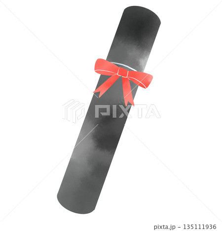 水彩風の卒業証書イラスト 赤いリボンの証書筒 卒業式のイメージ素材