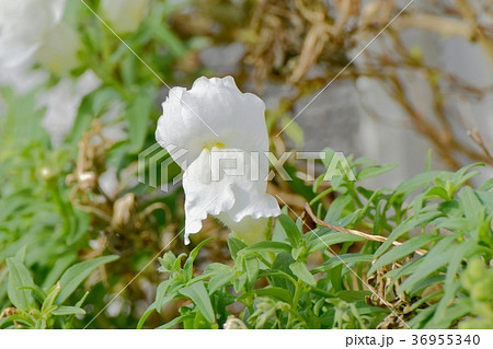 三鷹中原に咲く白いキンギョソウ
