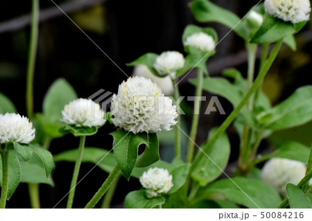 三鷹中原に咲く白いセンニチコウ (千日紅) の花