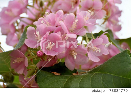 調布市深大寺元町の植物園に咲くピンクのドンベア(里見の春)の花