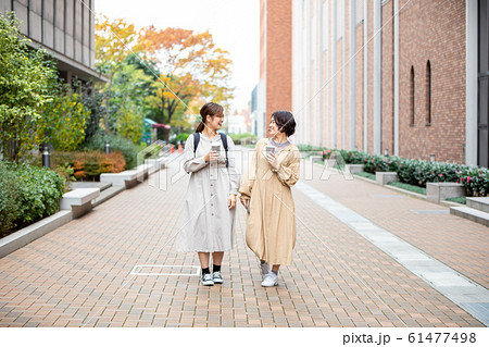 楽しそうに歩く女子学生の後姿 学校 制服 スクールライフ
