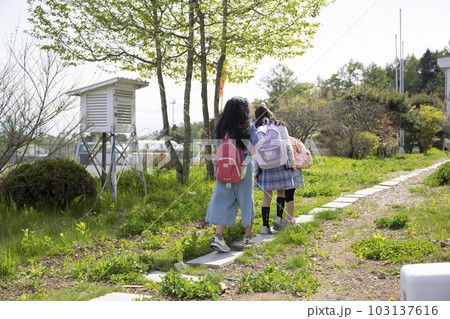 小学校の放課後に遊ぶ女子児童