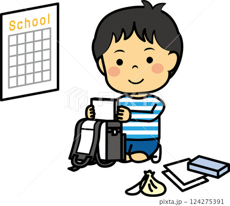 明日の準備をする小学生男児