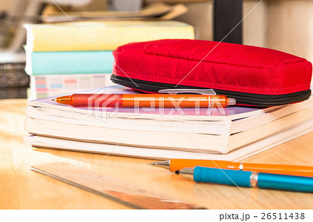 「STUDY」と書かれた積み木、ペン、ノート、参考書