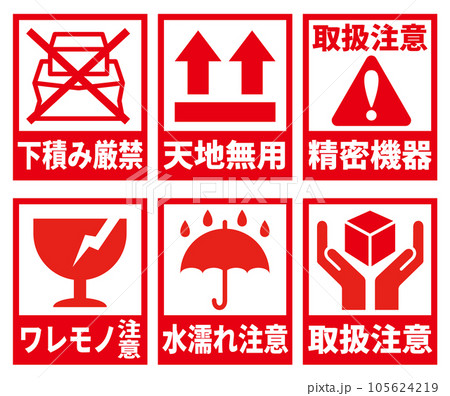 宅配便の注意書き 取り扱い注意 割れ物注意 上積み厳禁 張り紙 アイコンのイラストセット
