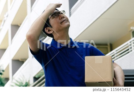荷物を持つ配達員の男性