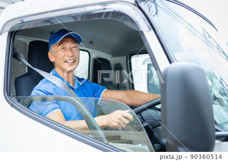 トラックを運転するミドルの男性ドライバー