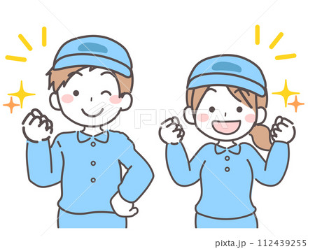作業着を着た男子・女子のバストアップ やる気1