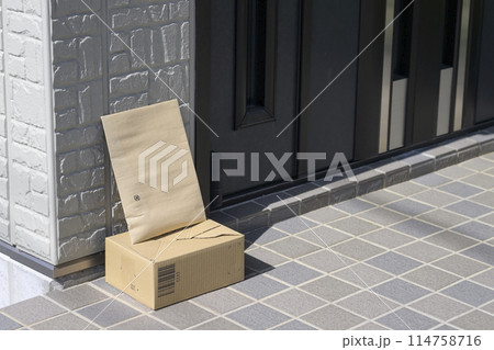 置き配 宅急便 配達 家 玄関 荷物 ダンボール