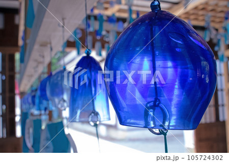 西伊豆「風鈴神社」に展示されたガラスの青い風鈴