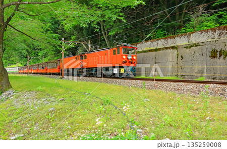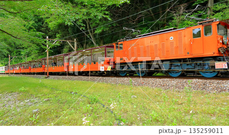 黒部川沿いを走る黒部峡谷トロッコ電車の夏の風景2 富山県黒部市