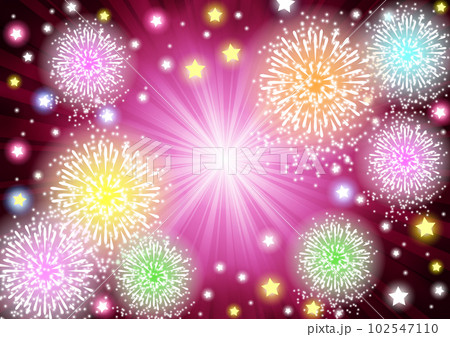 打ち上げ花火とカラフル星と爆発の赤い絵