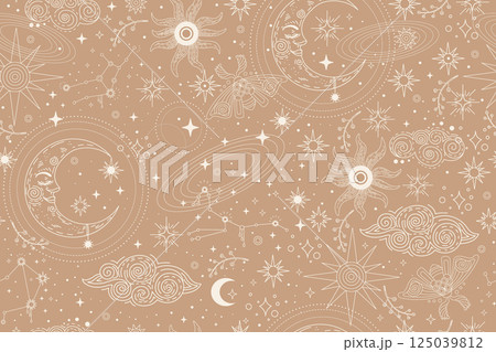 Seamless celestial esoteric pattern boho wallpaper illustration