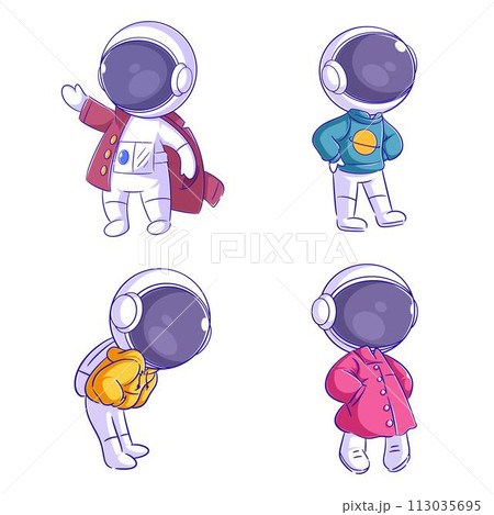Cute astronaut wearing a jacket, cartoon style set