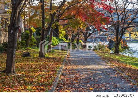 晩秋の濠川沿いの遊歩道 京都市伏見区