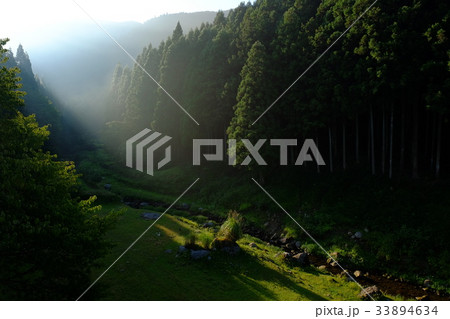 朝日を浴びる宇陀川(奈良県宇陀市)