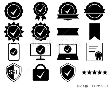 保証バッジのアイコン16種セット モノトーン
